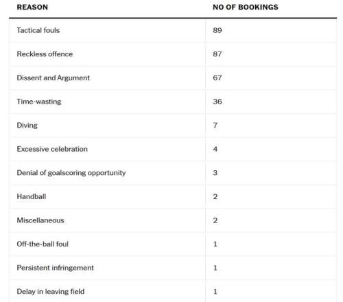 进一步分析,在第75分钟(包括暂停)之后,他们共收到107张黄牌,其中55张是因战术犯规(29张)和鲁莽犯规(26张),而24张是因异议/争论。