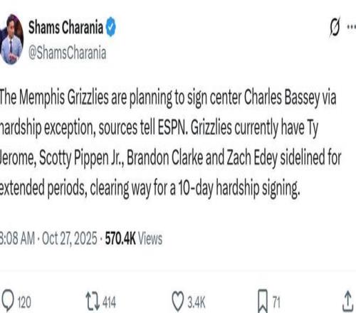 这导致灰熊队不得不向联盟申请10天伤病特例,以签下查尔斯-巴西应对内线捉襟见肘的人员轮转空缺。